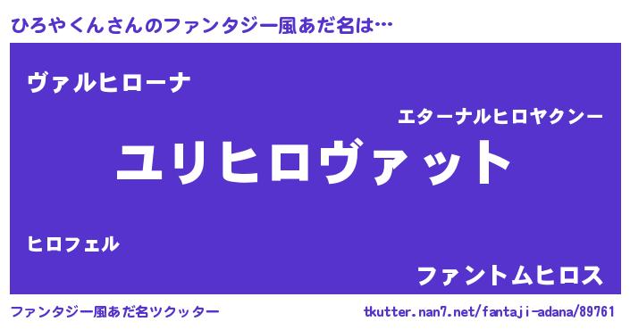 | 男性向けラノベタイトル風あだ名 | 『ひろやくん~年齢イコール彼女いない歴の魔法使い~』 |