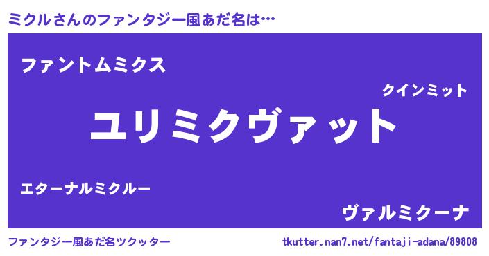 | 欧米人風あだ名 | 『トリンドルミクル』『ウサインミクル』 |