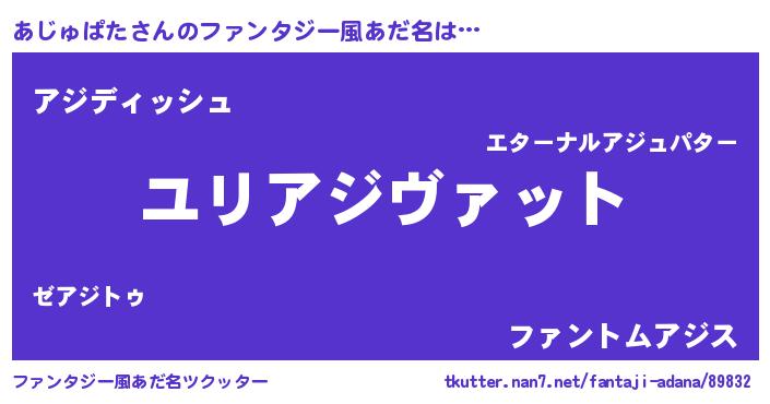 | 男性向けラノベタイトル風あだ名 | 『転生したらあじゅぱただった件』 |