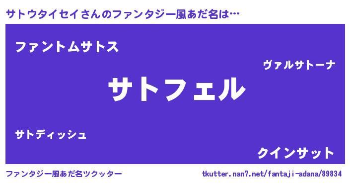 | ポケモン風あだ名 | 『サトチュウ』『ヒサトウタイセイ』 |
