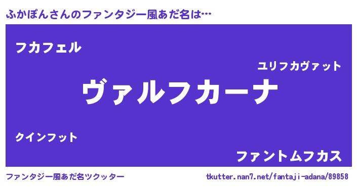 | ポケモン風あだ名 | 『フーカイ』『フカチュウ』 |