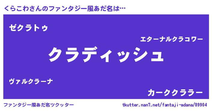 | 意味不明あだ名 | 『永久保存くらこわ』『自称くらこわ』 |
