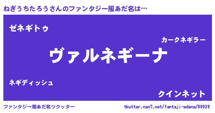| 男性向けラノベタイトル風あだ名 | 『魔弾の王とねぎうちたろう』 |