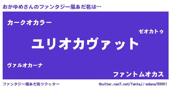 | ヒーロー風カッコイイあだ名 | 『幻影騎士オカ』『超時空戦士オカユメ』 |