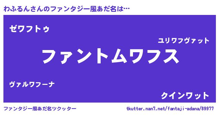 | 男性向けラノベタイトル風あだ名 | 『わふるんの嫁は女の子じゃないと思った?』 |