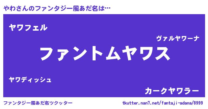 | 胡散臭い通販商品みたいなあだ名 | 『信頼と実績のサプリメント…その名も「やわ」』 |