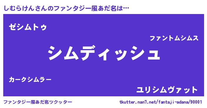 | 意味不明あだ名 | 『永久保存しむらけん』『自称しむらけん』 |