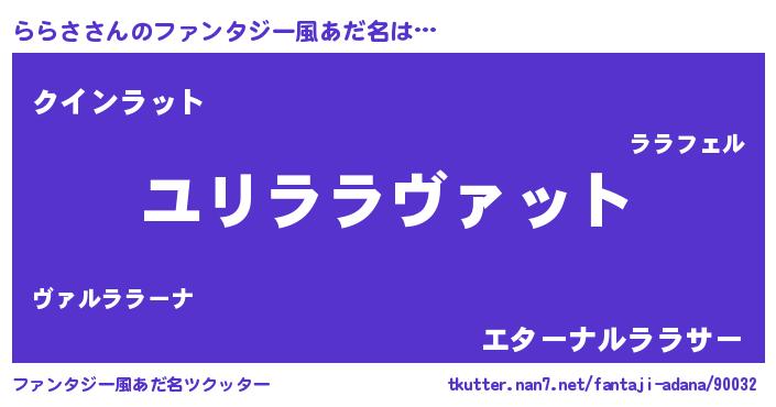 | ヒーロー風カッコイイあだ名 | 『慈愛の使者ららさ』『スーパーララサ』 |