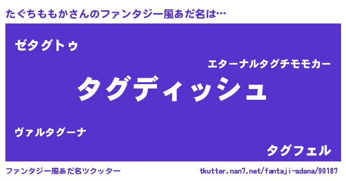 | ヒーロー風カッコイイあだ名 | 『ネオタグチモモカ』『仮面タグダー』 |