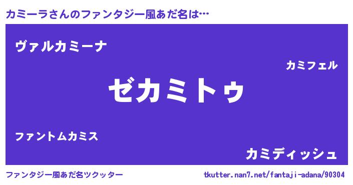 | 女子向けラノベタイトル風あだ名 | 『カミーラなんてお断りですっ。』 |