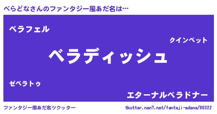 | 男性向けラノベタイトル風あだ名 | 『べらどなという概念が存在しない退屈な世界 』 |