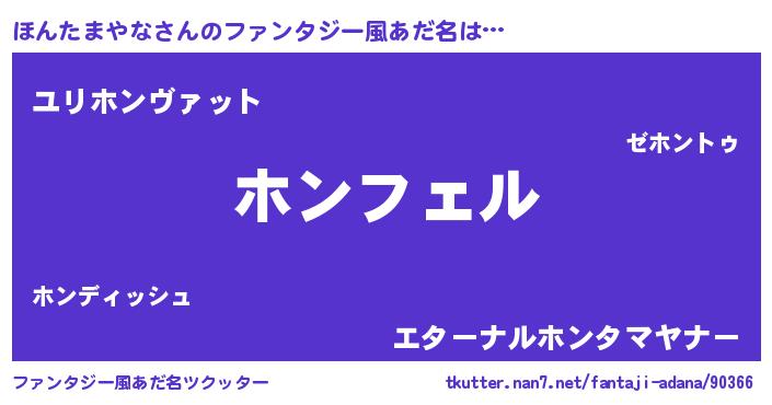 | 男性向けラノベタイトル風あだ名 | 『ホンタマヤナアートオンライン』 |