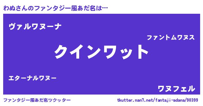 | 男性向けラノベタイトル風あだ名 | 『ノーゲーム・ノーワヌ』『わぬの憂鬱』 |