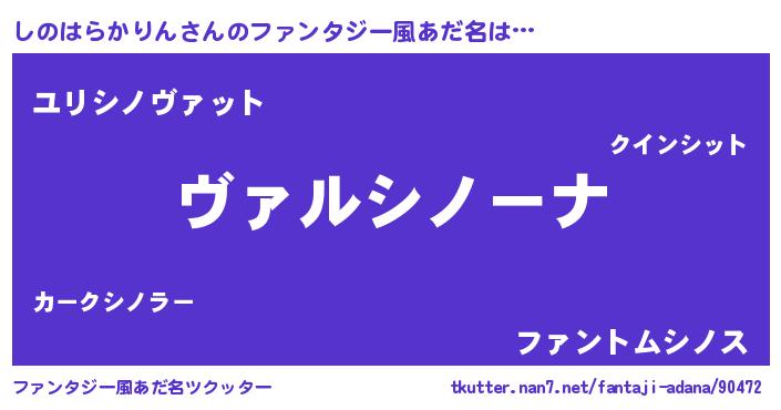 | 女子向けラノベタイトル風あだ名 | 『悪役しのはらかりんに転生したようですが、知った事ではありません』 |