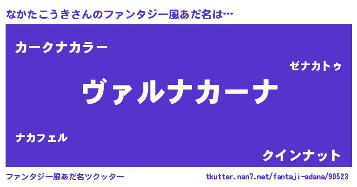 | 男性向けラノベタイトル風あだ名 | 『魔弾の王となかたこうき』 |