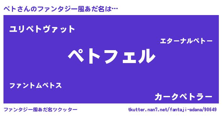 | ヒーロー風カッコイイあだ名 | 『スーパーペト』『ウルトラペトマン』 |