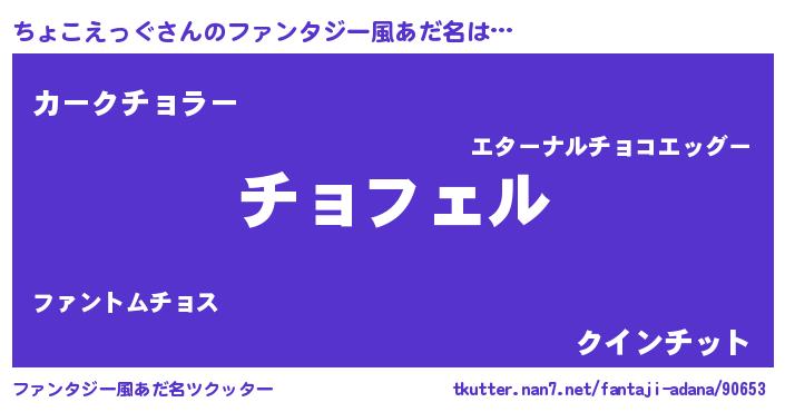 | 男性向けラノベタイトル風あだ名 | 『ちょこえっぐの憂鬱』 |