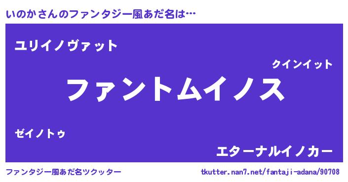 | ヒーロー風カッコイイあだ名 | 『魔戒騎士イノ』『ウルトラいのかマン』 |