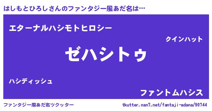 | 男性向けラノベタイトル風あだ名 | 『Re:はしもとひろしから始める異世界生活』 |