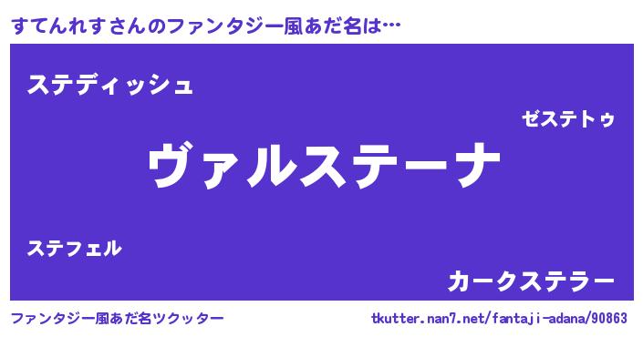 | 男性向けラノベタイトル風あだ名 | 『魔弾の王とすてんれす』 |