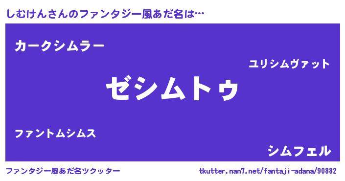 | 男性向けラノベタイトル風あだ名 | 『しむけんに滅ぼされるだけの簡単なお仕事です』 |