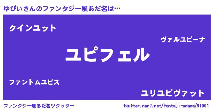 | ポケモン風あだ名 | 『ユピチュウ』『ユックウザ』 |
