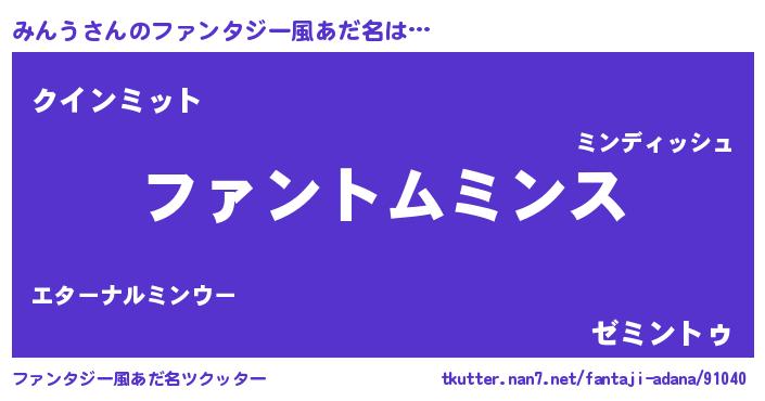 | ヒーロー風カッコイイあだ名 | 『魔戒騎士ミン』『正義の使者みんう』 |