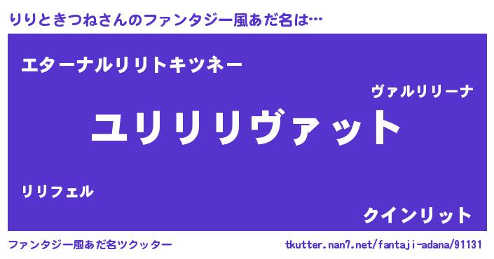 | 欧米人風あだ名 | 『トリンドルりりときつね』 |