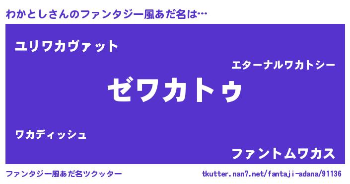| 男性向けラノベタイトル風あだ名 | 『Re:わかとしから始める異世界生活』 |