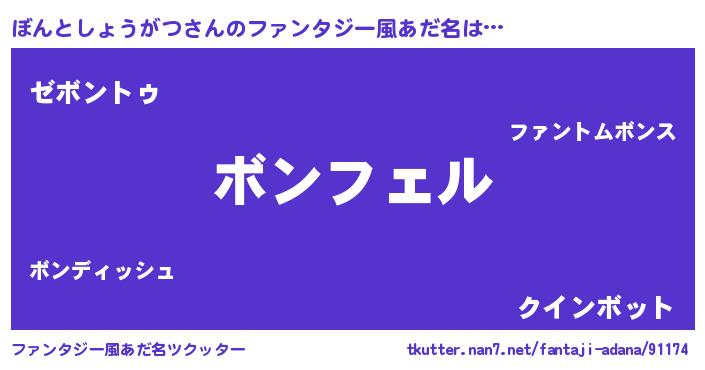| 男性向けラノベタイトル風あだ名 | 『ぼんとしょうがつの憂鬱』 |