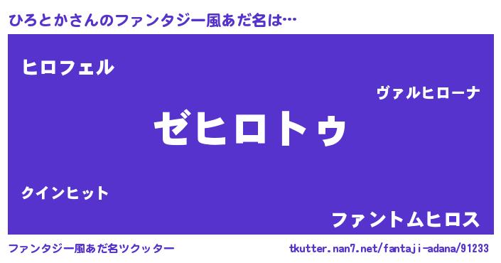 | ヒーロー風カッコイイあだ名 | 『サイバー戦士ヒロトカ』『魔戒騎士ヒロ』 |