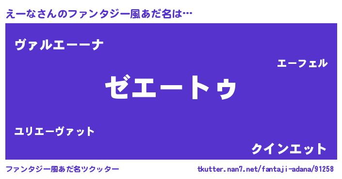 | 意味不明あだ名 | 『自称えーな』『住所不定無職えーな(1歳)』 |