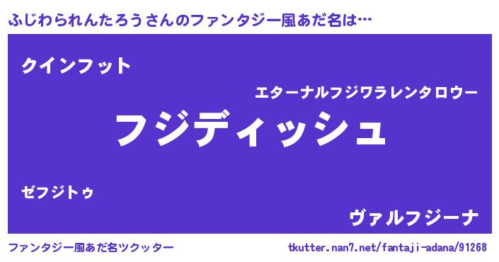 | 女子向けラノベタイトル風あだ名 | 『異世界で失敗しない100のふじわられんたろう』 |