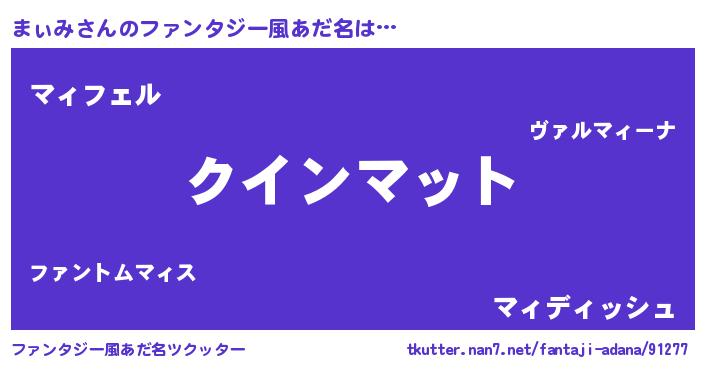 | 女子向けラノベタイトル風あだ名 | 『死神まぃみの再婚』『まぃみの契約王妃』 |