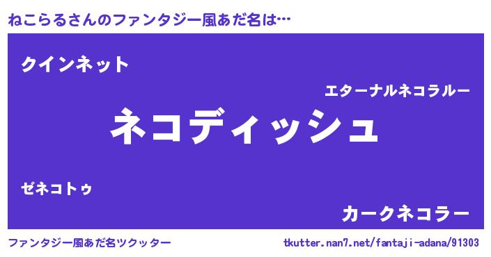 | ヒーロー風カッコイイあだ名 | 『ネオネコラル』『正義の使者ねこらる』 |