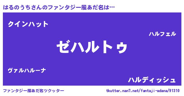 | 男性向けラノベタイトル風あだ名 | 『Re:はるのうちから始める異世界生活』 |