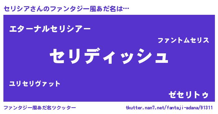 | ヒーロー風カッコイイあだ名 | 『ネオセリシア』『ウルトラセリシアマン』 |