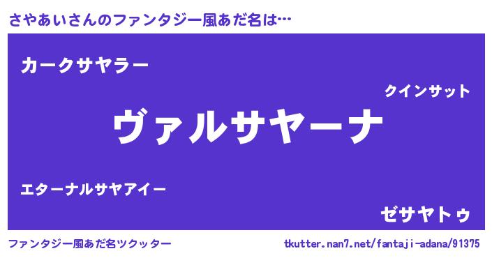 | 女子向けラノベタイトル風あだ名 | 『乙女ゲームの破滅フラグしかない悪役さやあいに転生してしまった…』 |