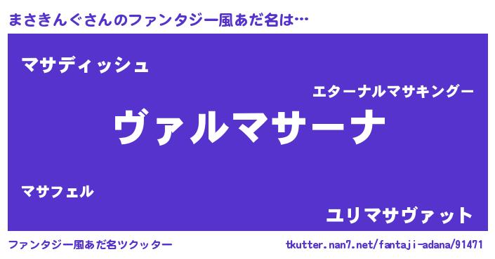| 男性向けラノベタイトル風あだ名 | 『この素晴らしい世界にまさきんぐを!』 |