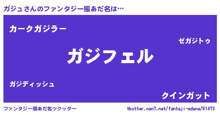 | 男性向けラノベタイトル風あだ名 | 『ガジュの憂鬱』『魔法科高校のガジュ』 |