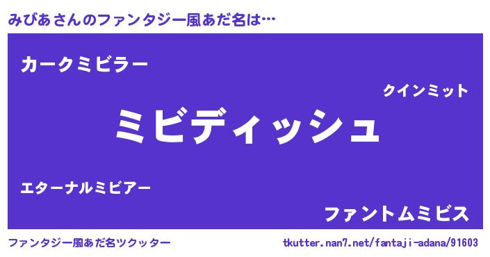 | 女子向けラノベタイトル風あだ名 | 『みびあの契約王妃』『死神みびあの再婚』 |