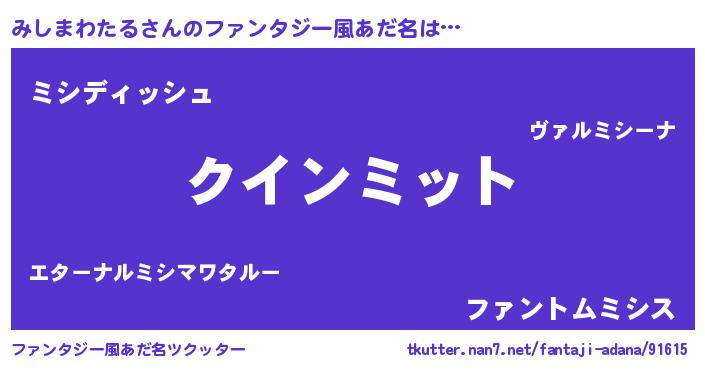 | 男性向けラノベタイトル風あだ名 | 『ノーゲーム・ノーミシマワタル』 |