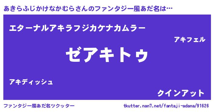 | 意味不明あだ名 | 『自称あきらふじかけなかむら』 |