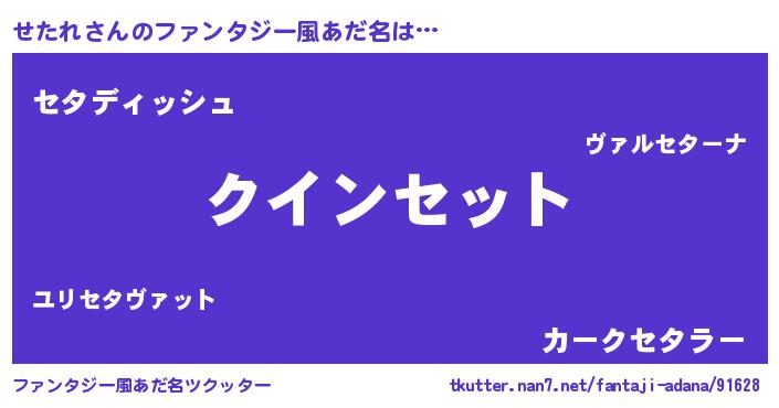 | 女子向けラノベタイトル風あだ名 | 『せたれ恋絵巻』『せたれの契約王妃』 |