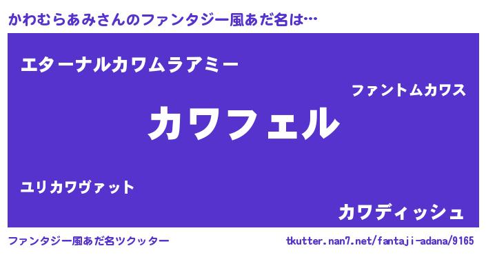 | ヒーロー風カッコイイあだ名 | 『スーパーカワムラアミ』『幻影騎士カワ』 |