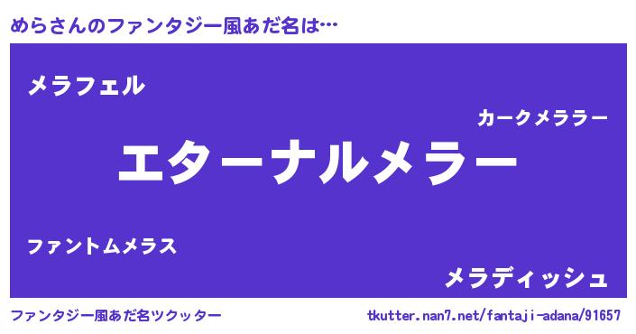 | 意味不明あだ名 | 『めらフォーエバー』『ペロリンめら』 |