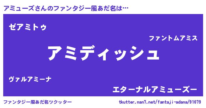 | ヒーロー風カッコイイあだ名 | 『ネオアミューズ』『暗黒騎士アミ』 |