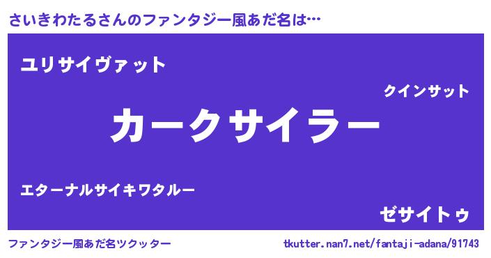 | 男性向けラノベタイトル風あだ名 | 『さいきわたるに滅ぼされるだけの簡単なお仕事です』 |