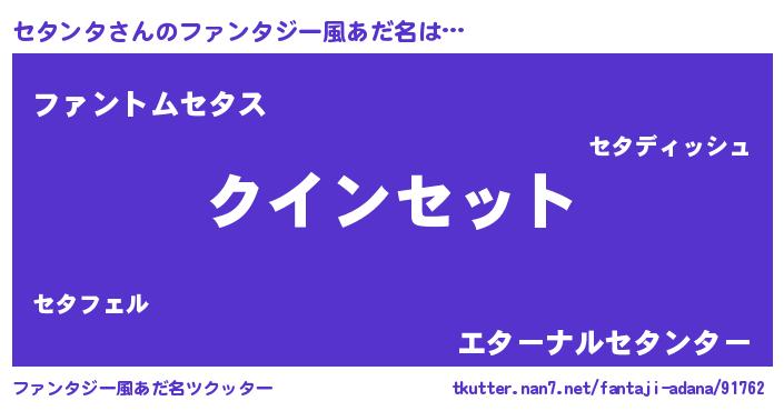 | 男性向けラノベタイトル風あだ名 | 『ノーゲーム・ノーセタンタ』 |
