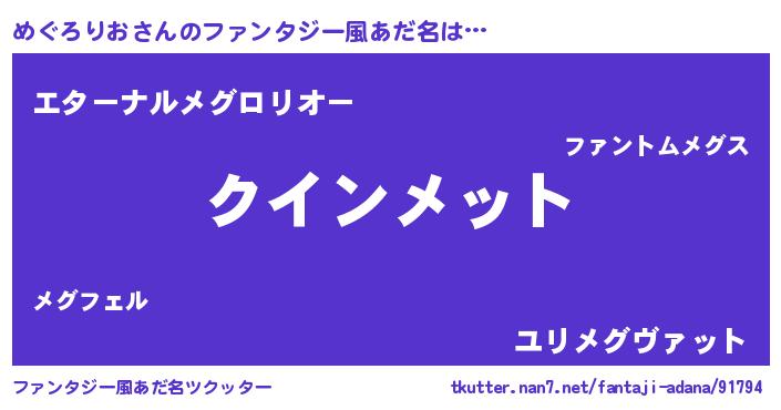 | 男性向けラノベタイトル風あだ名 | 『おまえをオタクにしてやるから、俺をめぐろりおにしてくれ! 』 |